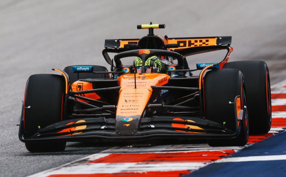A McLaren mostrou sua força em Spielberg e dominou o segundo treino livre para o GP da Áustria de Fórmula 1 na tela do BandSports. Após ser substituído por Alex Dunne no TL1, Lando Norris assumiu o carro pela primeira vez no fim de semana e cravou o melhor tempo da sexta-feira, 27, com 1min04s580, seguido de perto por seu companheiro Oscar Piastri, com 1min04s737.